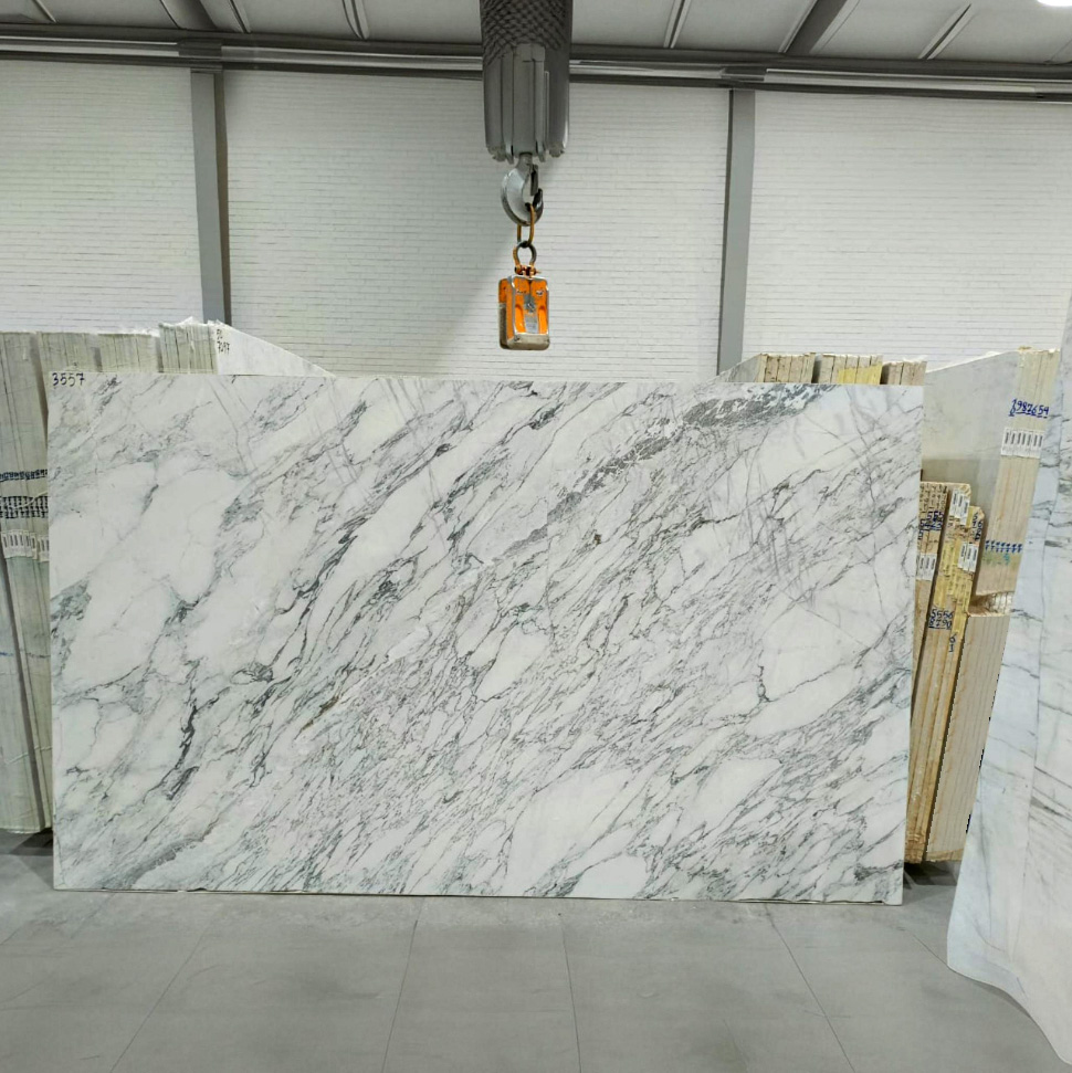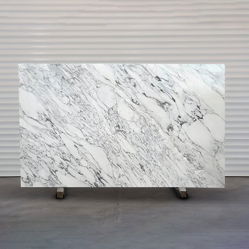 Make your kitchen look timeless with Arabescato Cielo marble slabs. Soft whites and dramatic grey veining will make any space look luxurious. These marble slabs are perfect for kitchens, durable and elegant, and will last forever.